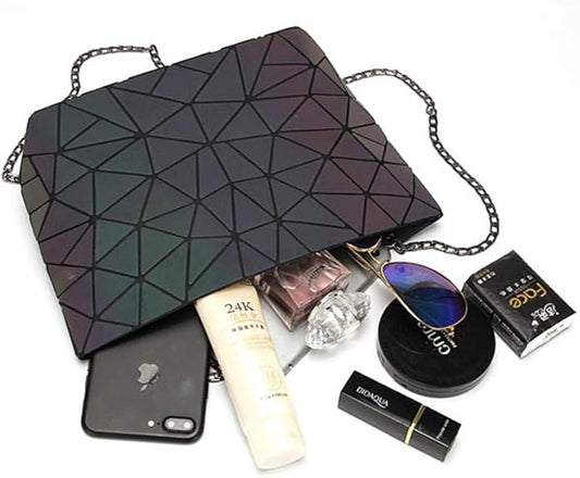 Fanny Packs for Women Men, Luminous Holographic Chest Bag Geometric Waist Pack for Travel, Festival, Running, Sports