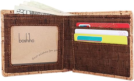 boshiho RFID Blocking Cork Wallet, Slim Bifold Vegan Credit Card Holder Purse Eco Friendly Gift for Men and Women