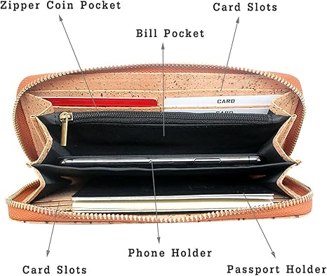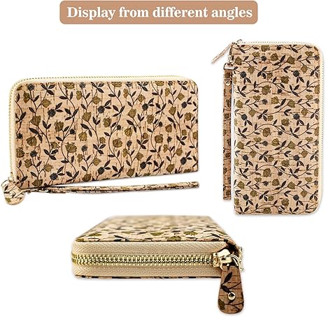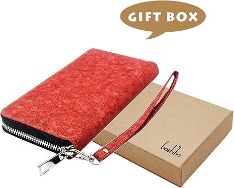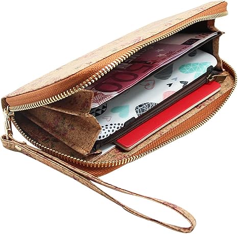 boshiho Cork Vegan Purse Wallet, Women’s Wallet Large Capacity Smart Phone Clutch Zip Long Purse with Card Holder Coin Pocket Vegan Gift