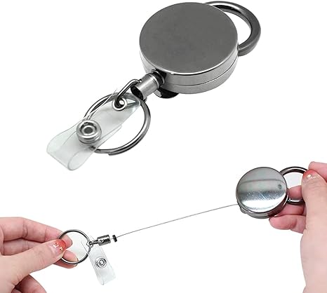 Retractable Key-Chain Badge Reel - Boshiho Heavy Duty Metal ID Badge Holder Key Reel, Key Holder Ring with Belt Clip