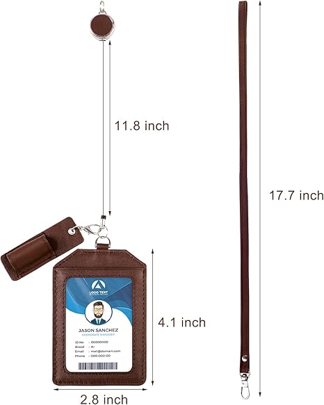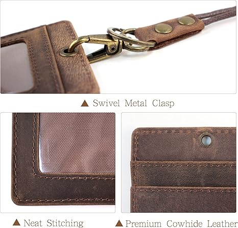 Office Badge Holder - Boshiho Genuine Leather Credit ID Card Holder with Stretch Neck Lanyard Vertical Style