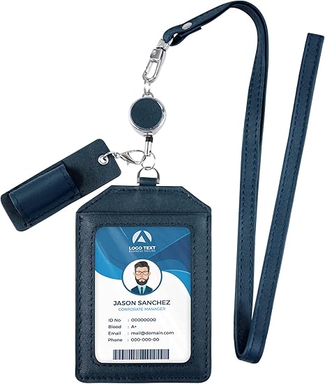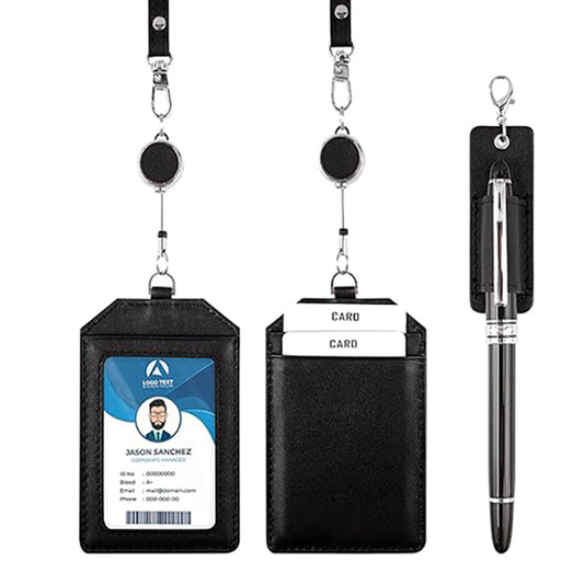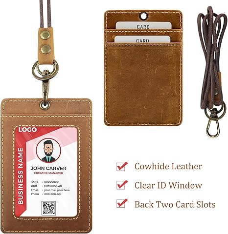 Office Badge Holder - Boshiho Genuine Leather Credit ID Card Holder with Neck Lanyard Pen Clip Vertical Style