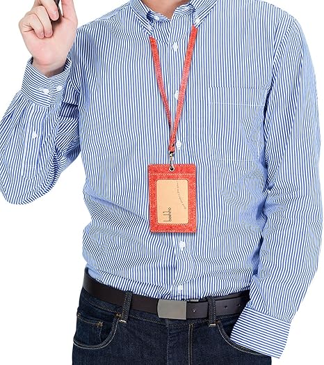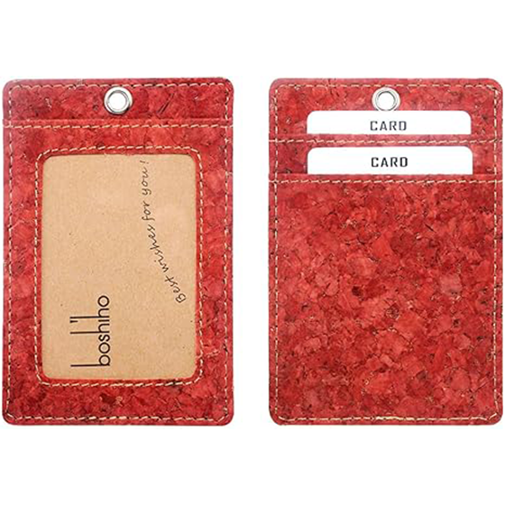 Cork Badge Holder, Boshiho Vertical Style Eco-friendly Natural Cork Name ID Card Holder with Lanyard