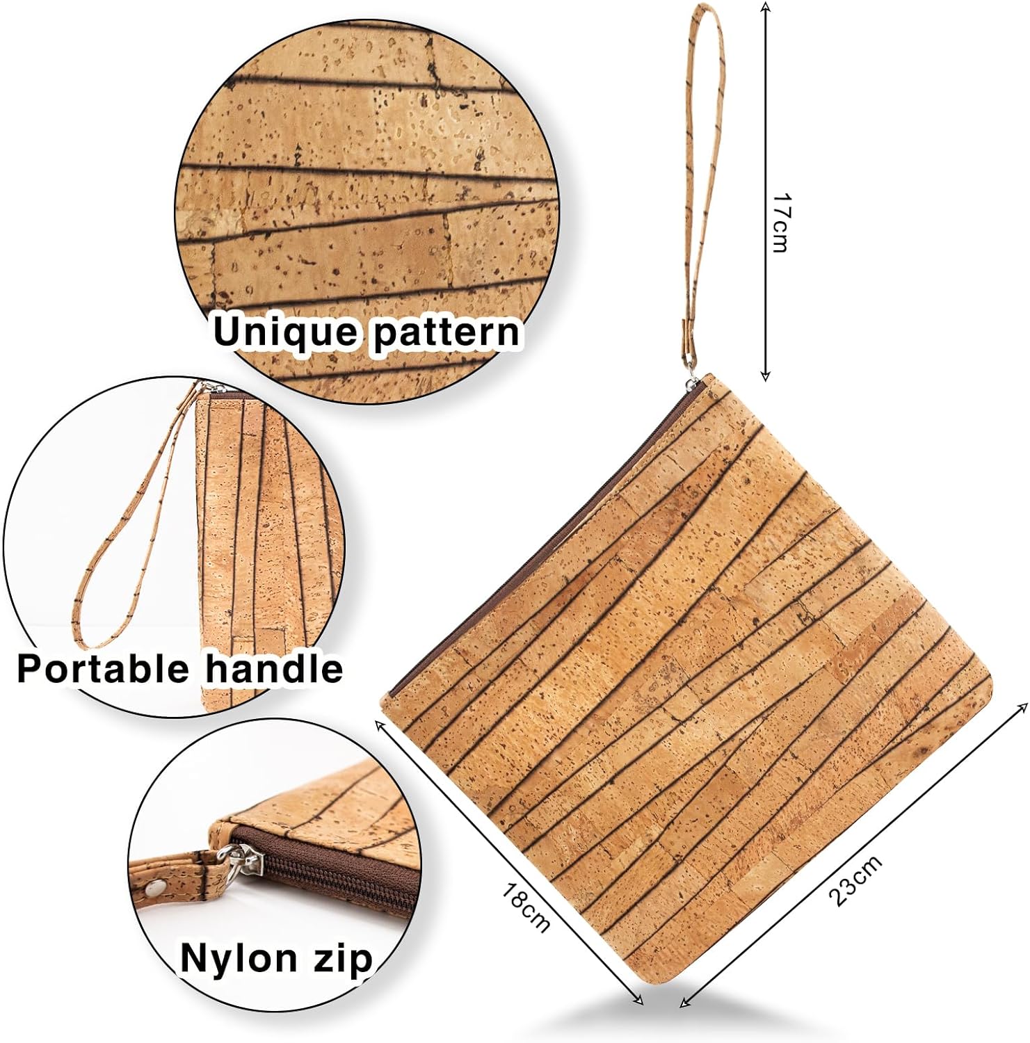 NATURAL CORK MATERIAL - This wristlet purses is made of eco-friendly cork material, soft, flexible and durable. Ideal gift for vegan and vegetarians.