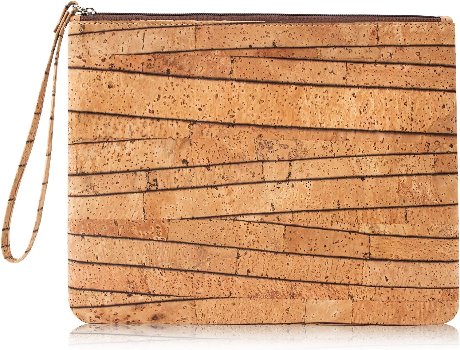 boshiho Clutch Purses for Women, Natural Cork Summer Wristlet Wallet Cell Phone Pouch Bag, 9 x 7 inch (Stripe Pattern)