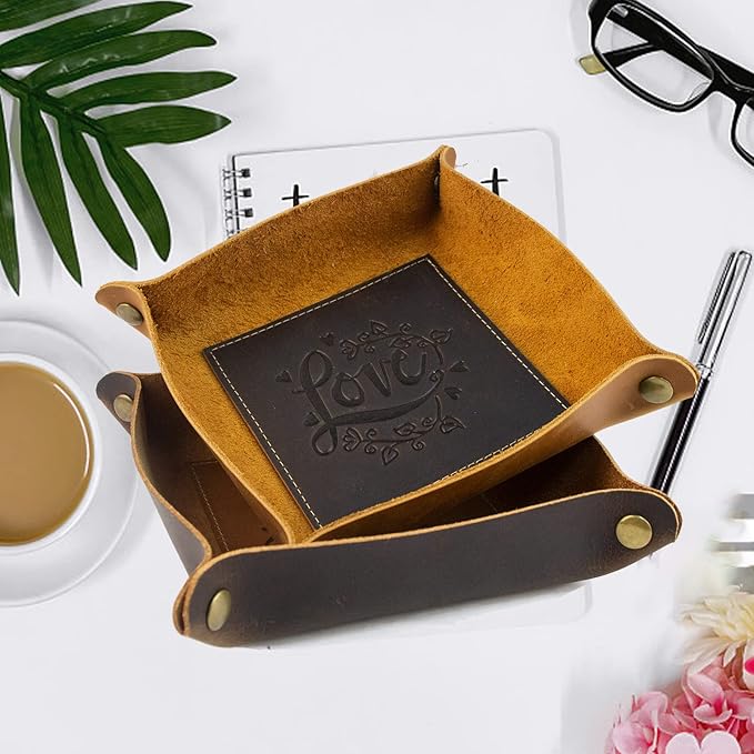 - GENUINE LEATHER MATERIAL - Boshiho Leather Tray for Men and Women is made of Full Grain excellent thick premium cowhide crazy horse leather.