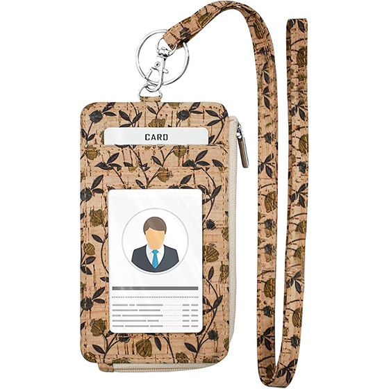 - VEGAN MATERIAL - ID holder with lanyard is made by Eco-friendly natural cork and combine with top grade hardware with safety side zipper. No need to worry about cards could accidentally slip out or lanyard rips any more.