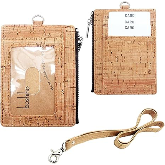 - ECO-FRIENDLY CORK MATERIAL - ID holder with lanyard is made by CORK and combine with top grade hardware with safety side zipper. No need to worry about cards could accidentally slip out or lanyard rips any more.