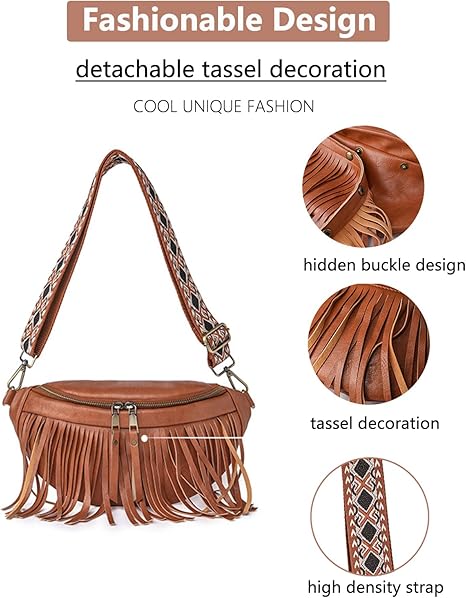 - 【Trendy Waist Pack】: This trendy urban-style waist pack allows you to keep your hands free while carrying your essentials. Perfect for casual wear, it adds a fashionable flair to any outfit with its fringe detailing.