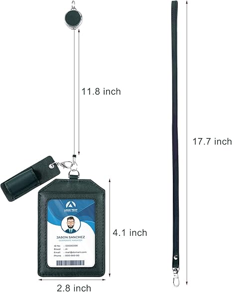 - STRETCH BADGE LANYARD - 17.7" full length leather lanyard, durable and soft, very comfortable to wear. It is also with a badge reel, which is able to extend to 11.8 inches, you just need to pull your holder and swipe your cards through the door elegantly and fastly rather than take it off or struggle to get your body close to the card reader.