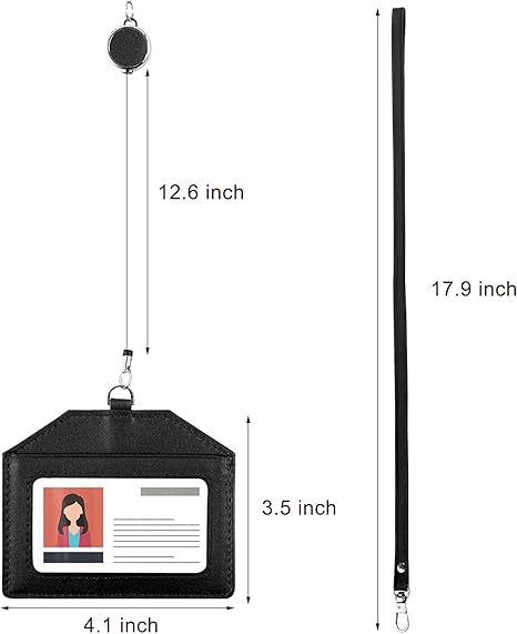 - STRETCH BADGE LANYARD - 17.9" full length leather lanyard, durable and soft, very comfortable to wear. It is also with a badge reel, which is able to extend to 12 inches, you just need to pull your holder and swipe your cards through the door elegantly and fastly rather than take it off or struggle to get your body close to the card reader.
